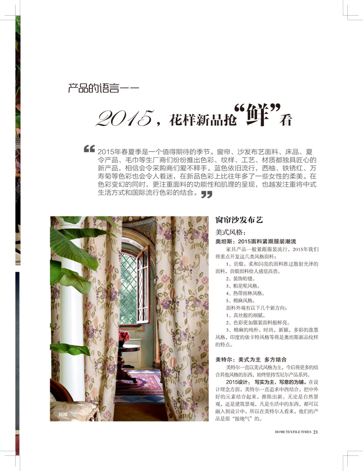 | 您所在的位置: 首页 > 家纺时代 > 2015年 > 201502>正文 |