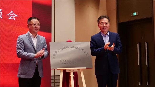 会议期间,领导嘉宾们为第三届全国家用纺织品标准化技术委员会床上用品分技术委员会揭牌,为主任委员、副主任委员及委员代表颁发了委员证书。