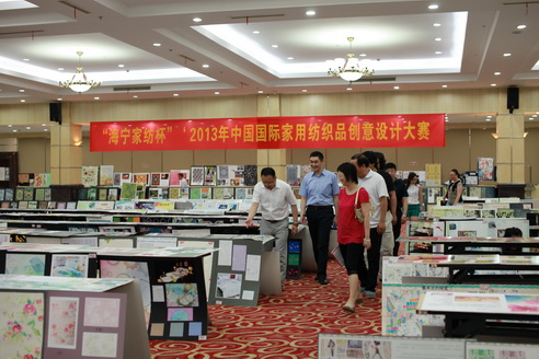 由中国家用纺织品行业协会、中国国际贸易促进委员会纺织行业分会、法兰克福展览(香港)有限公司、海宁市人民政府主办,中国家用纺织品行业协会设计师分会和中国布艺名镇许村共同承办的“海宁家纺杯”2013年中国国际家用纺织品创意设计大赛经过精心筹备,在国内外各院校及企业的踊跃参与下,于2013710-11日,在海宁许村中国家纺城开始评比工作。