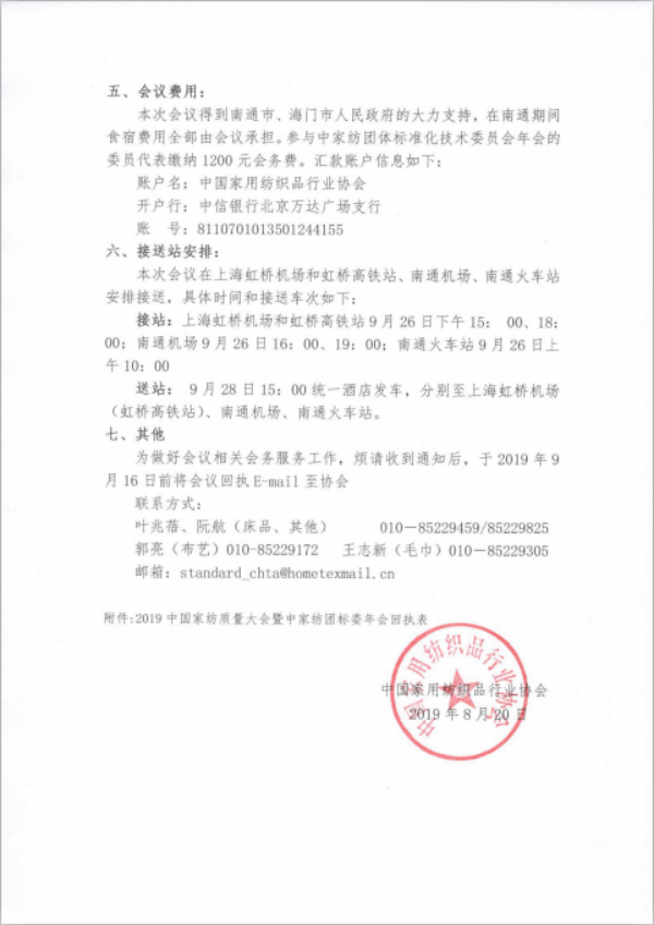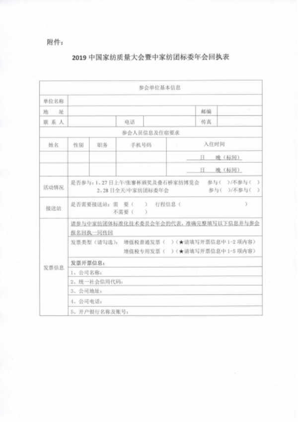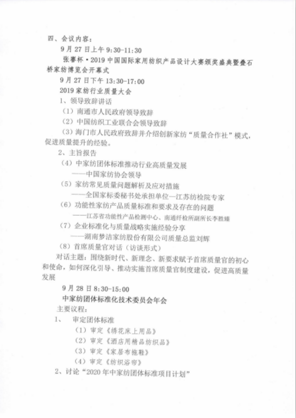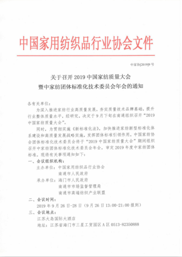 关于召开2019中国家纺质量大会 暨中家纺团体标准化技术委员会年会的通知