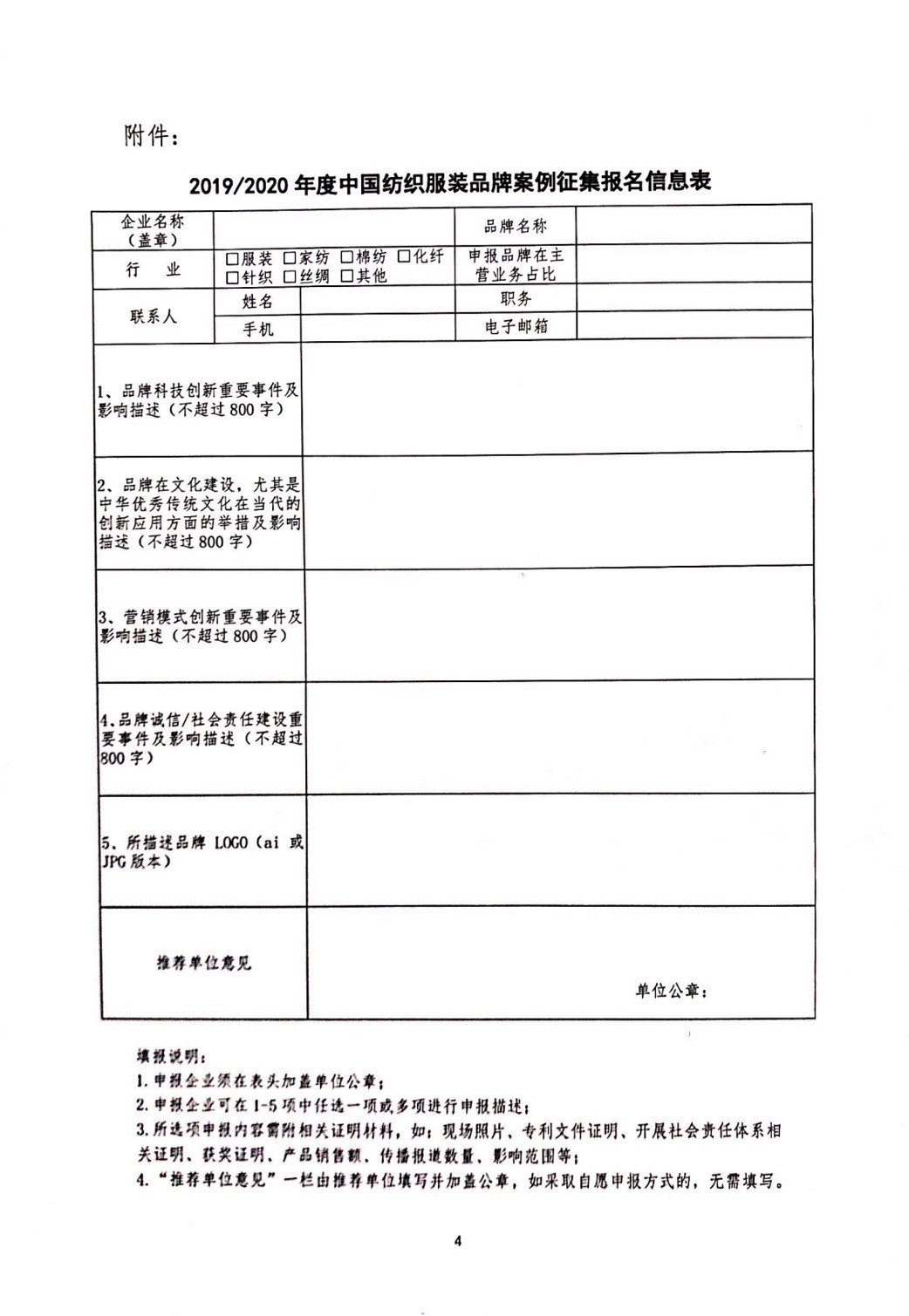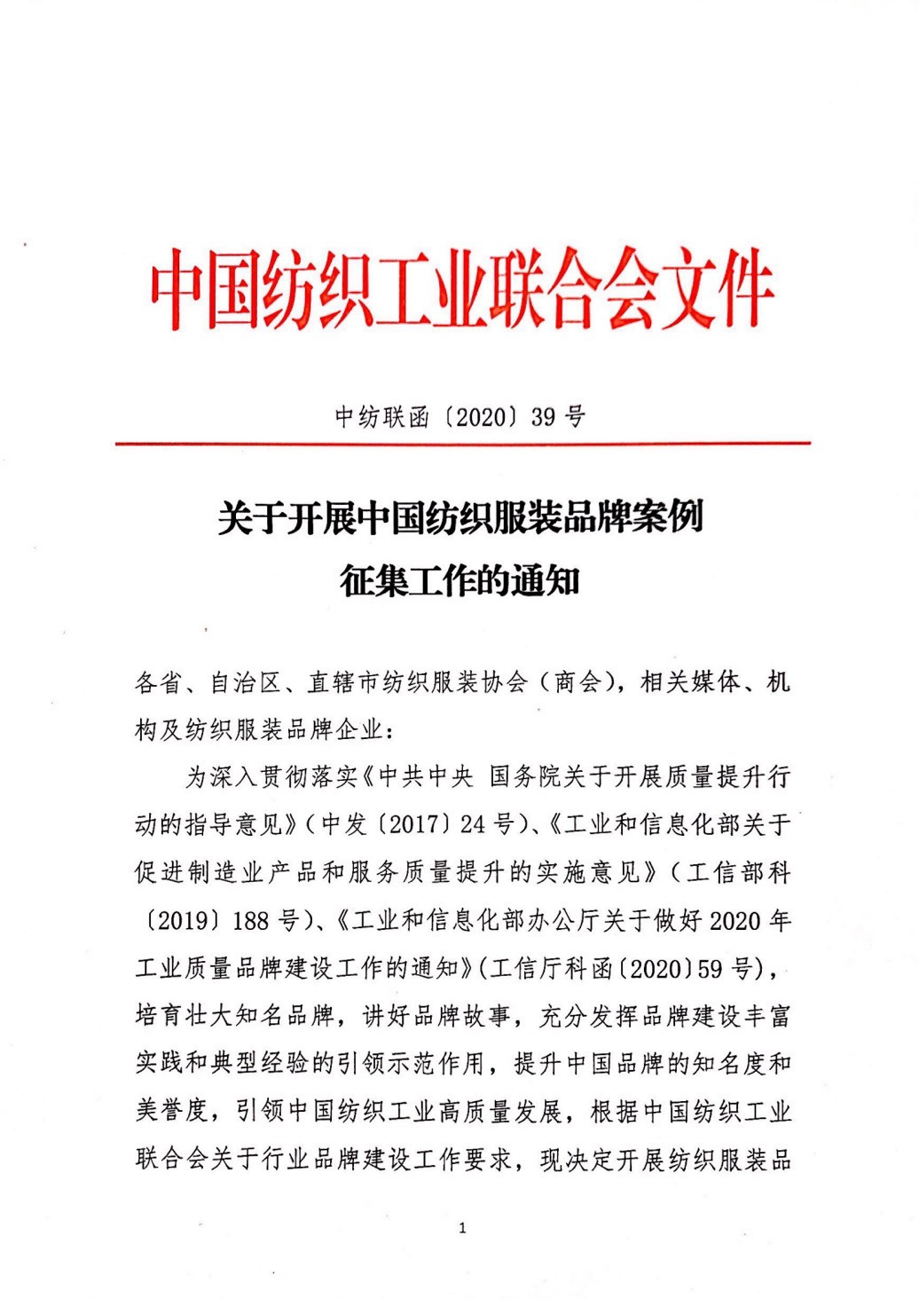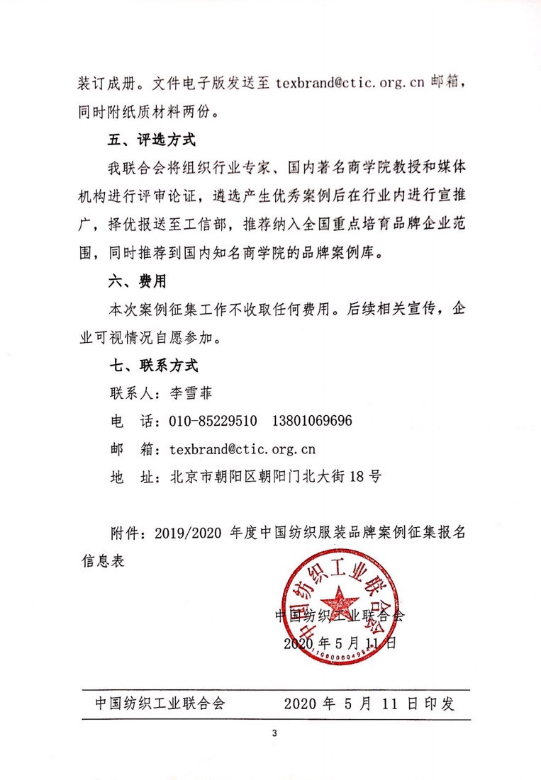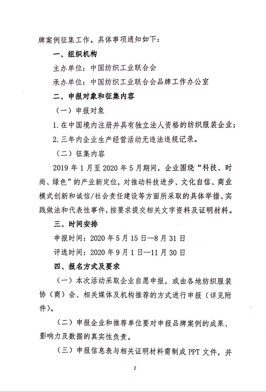 关于开展中国纺织服装品牌案例征集工作的通知