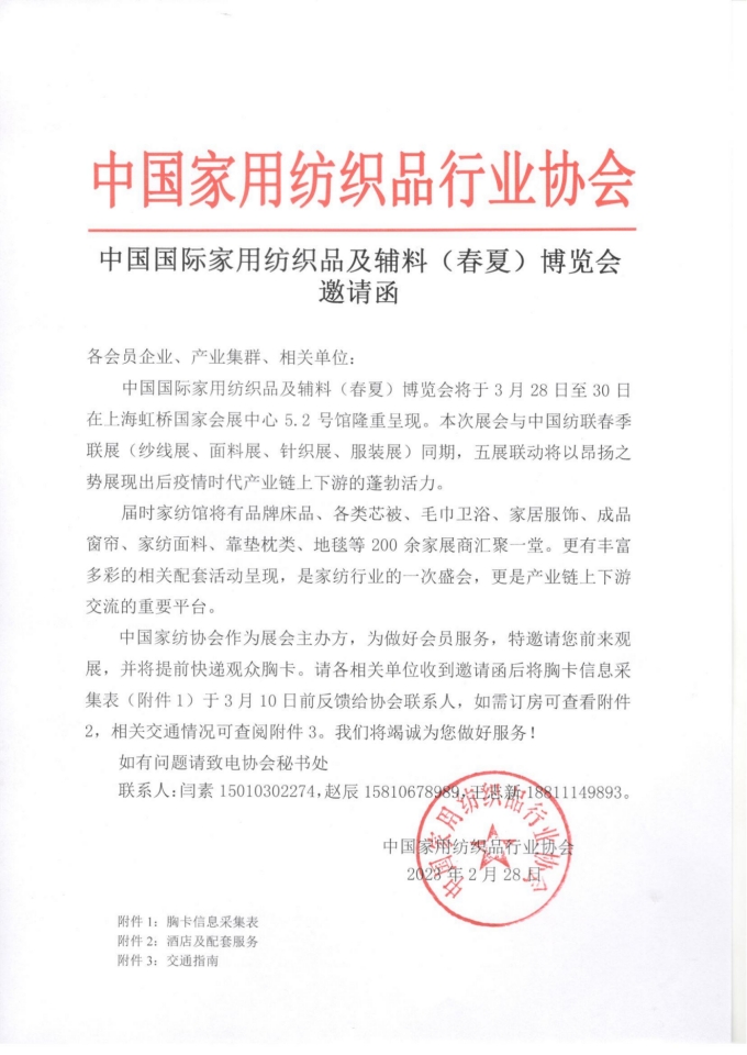 | 版权所有:中国家用纺织品行业协会 Copyright©2012China home textile association All Rights Reserved 地址:北京市朝阳区朝阳门北大街18号十层 电话:010-010-85229322 E-mail:service@hometexmail.cn 京公网安备11010502039980号
