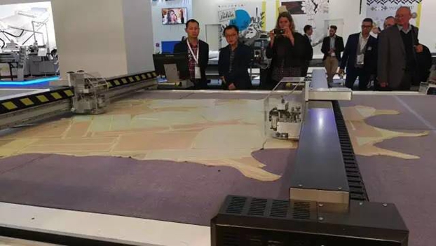上海长园和鹰智能科技有限公司此次展出了裁床和自动生产吊挂系统。剪裁设备是上海和鹰的业务基础,其裁切设备在全球服装、家纺领域的市场份额占到60%~70%。此次展出的数字化裁床是去年底推出的新系列,适用于皮革、高性能纤维材料的裁切,其效率、精度、原料利用率都有新的提升。