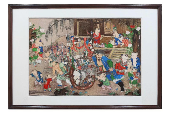 据蔡民强介绍,经过精挑细选,本次参展的30余件刺绣精品有“三个特点”:高:作品的选题严谨,集中了近代、清代以前的高精画稿,以刺绣的表达进行第二次创作,近代的画稿甚至以重金购买版权或征得画家版权。精:集垫高、立体等各种针法,用二丝、一丝、十六分之一丝、三十二分之一丝的精细绣法,史所未见。大:一批2米到6米多的刺绣巨作在几人、十几人花若干年艰辛的创作中产生,令人震撼。