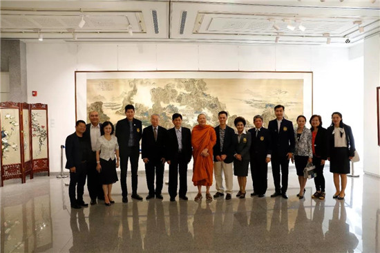 5月8日下午,泰国副僧王赵坤通猜大师专程赴曼谷中国文化中心,一睹正在展出的“锦绣丝路——中国精品刺绣艺术展”风采,对作品大加称赞,称其是世界之精品,是值得学习和传承的了不起的技艺。据悉,赵坤通猜大师长期致力于中泰文化交流,曾倡导泰国岱密中学于2006年11月成立起全球首家孔子课堂,后于2015年联合20多家泰国文化教育机构在曼谷博仁大学成立全球首家海上丝路孔子学院并担任孔院理事会主席一职,为推动泰国青少年汉语教育做出了巨大贡献。离开的时候,他特意把他的新著签名赠予蔡民强,并且和他合影留念。