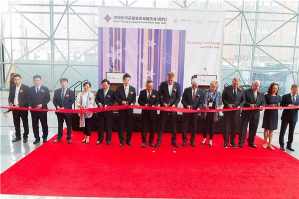 中国纺织工业联合会副会长,中国国际贸易促进委员会纺织行业分会常务副会长徐迎新、中国驻纽约总领事馆代总领事赵宇敏、商务参赞周善青、中国针织工业协会副会长瞿静、南京市商务局副局长李大军、深圳内衣协会常务副会长张峰伟、德国法兰克福展览公司董事Detlef Braun、法兰克福展览美国公司总裁Dennis Smith,法兰克福展览(香港)有限公司高级总经理温婷,法兰克福展览(上海)有限公司总经理赵慰平以及美国时尚产业协会董事会主席Michael Singer、美国时尚产业协会会长Julia K. Hughs,出席开幕式并剪彩。