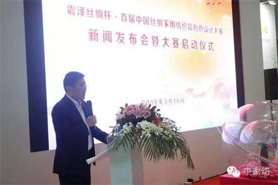 中国家用纺织品行业协会会长杨兆华讲话说,震泽是中国丝绸家纺的重要基地,在政府、产业集群、企业等各方的努力下取得了飞速的发展。此次大赛为提升震泽的设计软实力,打造震泽的丝绸家纺区域品牌做出新的贡献。