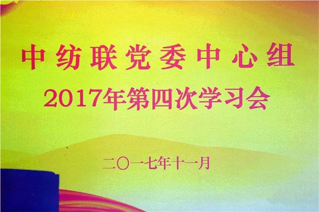 11月22日,中国纺织工业联合会党委中心组2017年第四次学习会在京召开。中国纺织工业联合会党委书记兼秘书长高勇,会长孙瑞哲,副会长夏令敏,党委副书记陈伟康,副会长徐迎新、陈大鹏、端小平、杨兆华、孙淮滨等中纺联党政领导班子成员、中纺联党委委员、纪委委员,以及各部门、各单位主要负责人,各基层党组织书记、副书记、学习委员、联络员,中纺联团委主要负责人及其他有关人员参加会议。会议由陈伟康主持。